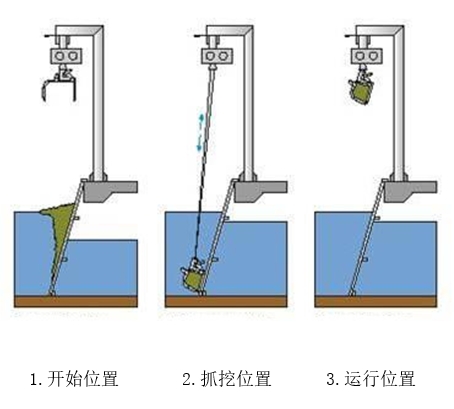 如果有很多垃圾或其它障碍物使得耙斗不能到底,小车上的松绳装置将使小车停止下行,同时闭耙并提升。抓聚的垃圾将被带到卸料位并卸料。随后小车移动至下一工作位,继续下一循环。提升到位和下放到底由一电驱动油泵输送,它直接安装在移动小车的油箱上。