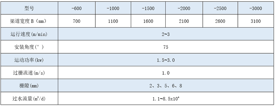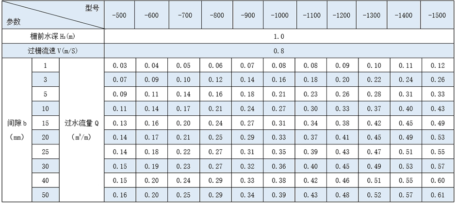 注:表中流量按栅前水深1米计。具体处理量根据实际要求定制。