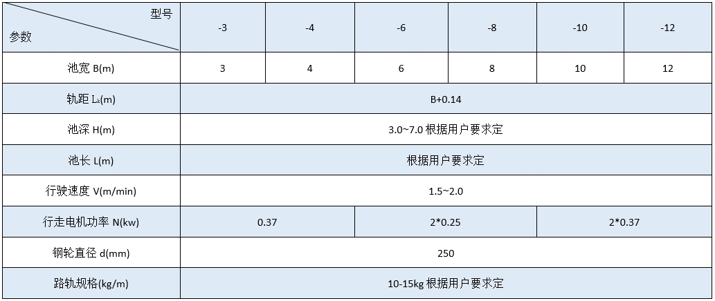 该设备采用移动桥式、泵吸式,当吸砂机不工作时,即停在进水端;当吸砂机工作时,行车在电气控制的指令下,当顺水流行驶时,先放下撇渣板,刮集浮渣并撇向池端钢制撇渣槽内;反向行驶时,撇渣耙提升,离开液面以防浮渣逆行。池底砂水由吸砂泵通过吸管将其排入池边集砂槽内,再由此通过管道而流入砂水分离器内,进行下一步处理,依此作往返工作运动,从而达到吸砂、排砂、撇渣的目的。