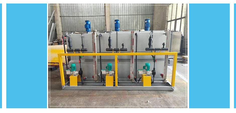 本设备为一体化装置。主要由搅拌机、搅拌箱、熟化箱、储药箱、干粉投加设备、加热除湿装置、液位计、计量输送泵流量计及电控箱等部件组成。根据药液性质采用多种材质及防护层。具有结构紧凑、投药系统不堵塞,操作管理方便等优点