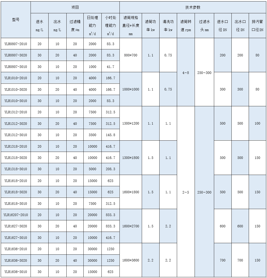 设备的核心是过滤系统,是由转筒和滤网组成。滤网为316L不锈钢材质,孔径10~100µm。过滤器的滤水流程路线从内到外。