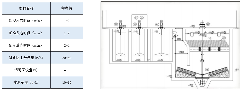 整个工艺的停留时间很短,因此对包括TP在内的大部分污染物,出现反溶解过程的机率非常小,另外系统中投加的磁粉和絮凝剂对细菌、病毒、油及多种微小粒子都有很好的吸附作用,因此对该类污染物的去除效果比传统工艺要好,特别是除磷效果尤其显著,同时由于其高速沉淀的性能,使其与传统工艺相比,具有速度快、效率高、占地面积小、投资小等诸多优点。磁混凝沉淀技术是革命性的新技术。