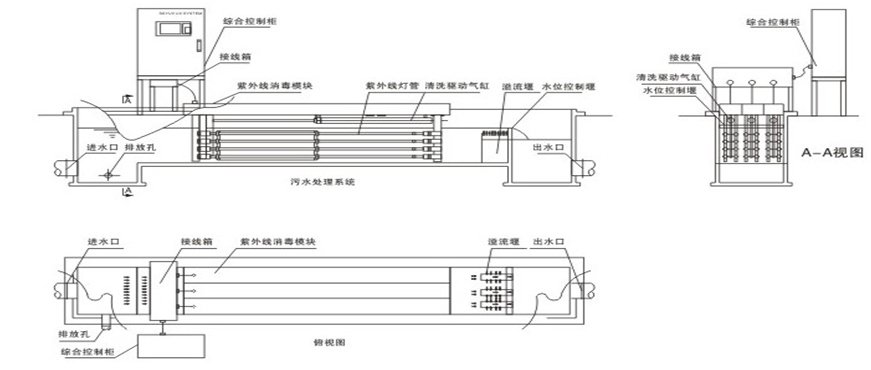 明渠式紫外线消毒系统采用模块化设计,便于污水处理能力的扩大。