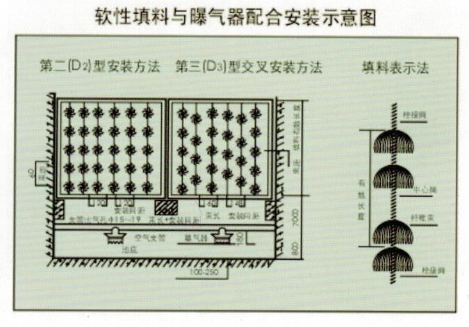 组合软性填料由于它的比表面积大、利用率高、空隙可变不堵塞、适用范围广、造价低等优点,近年来已被广泛地用于印染、丝绸、毛纺、食品、制药、石油化工、造纸、麻纺、医院、含氯等废水处理中。